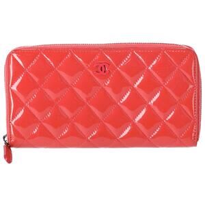 CHANEL Matelasse Long Wallet Pink Patent Leather