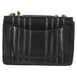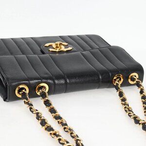 CHANEL Matelasse Mademoiselle Chain Bag Grained Calf Skin Black Gold CC Auth