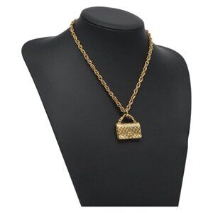 CHANEL Matelasse Necklace metal Gold CC Auth