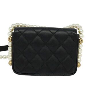 CHANEL Matelasse Pearl Shoulder Bag Lamb Skin Black Gold CC Auth 124901