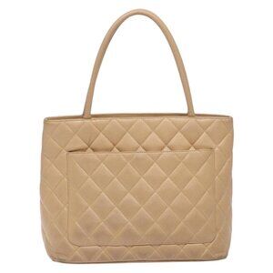 CHANEL Matelasse Reprint Tote Bag Grained Calf Skin Beige Gold CC Auth