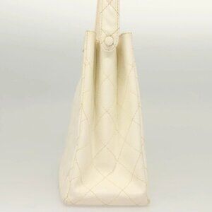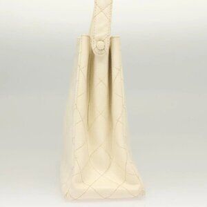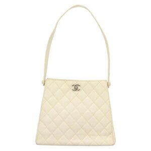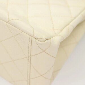 CHANEL Matelasse Shoulder Bag Grained Calf Skin White Silver CC Auth PP803V