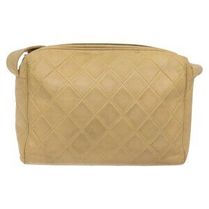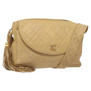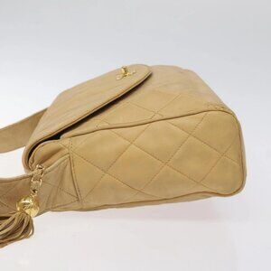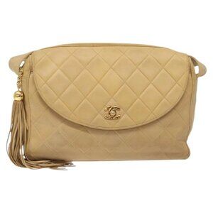 CHANEL Matelasse Shoulder Bag Lamb Skin Beige Gold CC