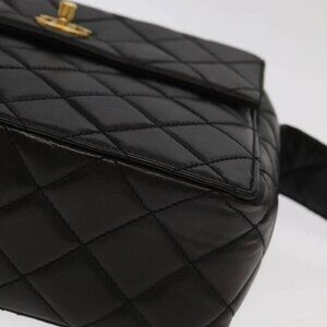 CHANEL Matelasse Shoulder Bag Lamb Skin Black Gold CC Auth 104998A