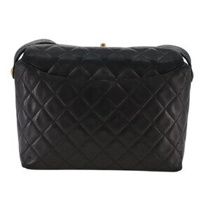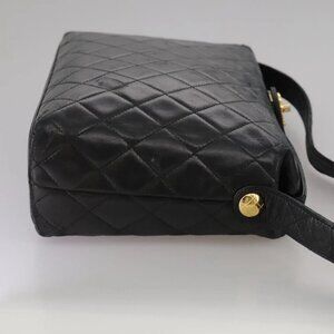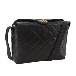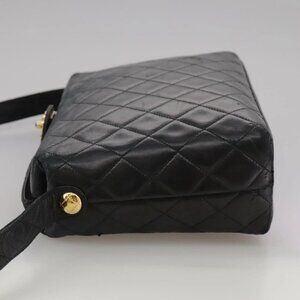 CHANEL Matelasse Shoulder Bag Lamb Skin Black Gold CC Auth 108071