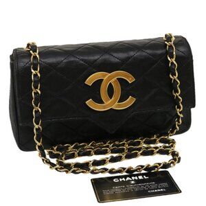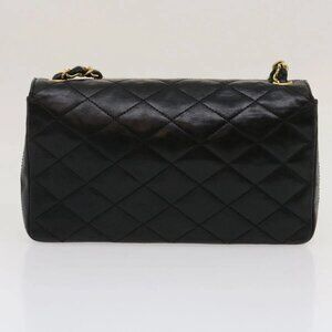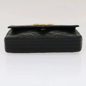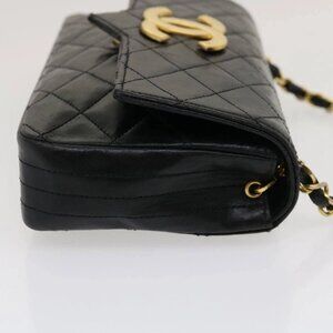 CHANEL Matelasse Shoulder Bag Lamb Skin Black Gold CC Auth jk1831