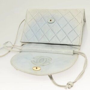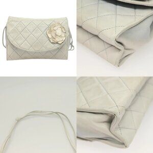 CHANEL Matelasse Shoulder Bag Lamb Skin Ivory Gold CC Auth 128238