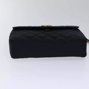 CHANEL Matelasse Stone Chain Shoulder Bag Satin Black CC Auth