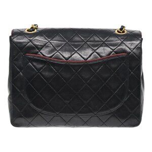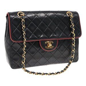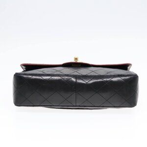 CHANEL Matelasse Turn Lock Chain Hand Bag Lamb Skin Black Gold CC Auth