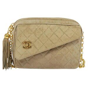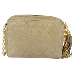 CHANEL Matelasse Turn Lock Chain Shoulder Bag Lamb Skin Beige CC Auth