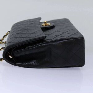 CHANEL Matelasse Turn Lock Chain Shoulder Bag Lamb Skin Black CC Auth yk12470A