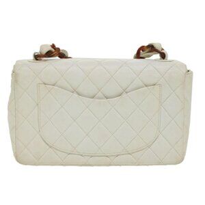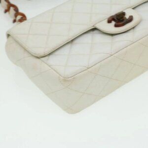 CHANEL Matelasse Turn Lock Shoulder Bag Lamb Skin Brown White CC Auth 32160A
