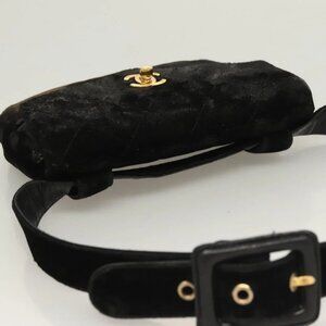 CHANEL Matelasse Waist Bag Velor Black Gold CC