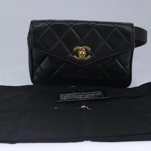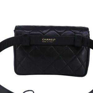CHANEL Matelasse Waist bag Leather Black CC Auth