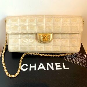 CHANEL 💛 Metallic Gold White Rectangular Convertible Clutch East West Flap Bag