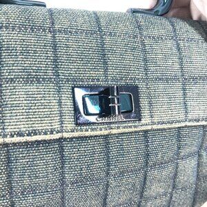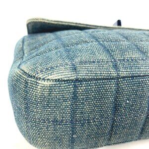 CHANEL Metallic Handle Chocolate bar 2.55 Square Bag Hand Bag Denim blue