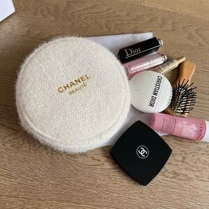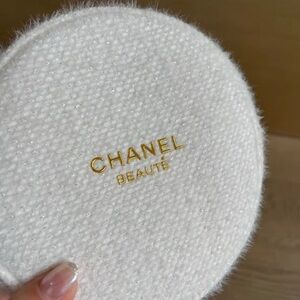 CHANEL Mini Makeup Bag in Cream with Gold Logo