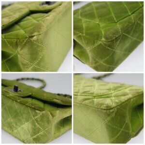 CHANEL Mini Matelasse 20 Single Flap Chain Bag Velor Green CC Auth 115601A