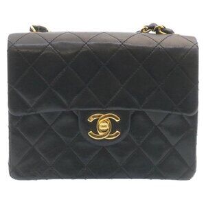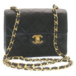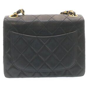 CHANEL Mini Matelasse Chain Flap Shoulder Bag Lamb Skin Black Gold Auth 28471AM
