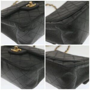 CHANEL Mini Matelasse Chain Flap Shoulder Bag Lamb Skin Black Gold Auth hs689AV