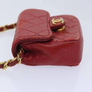 CHANEL Mini Matelasse Chain Pouch Lamb Skin Red Gold CC