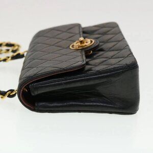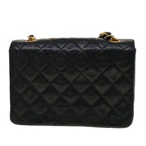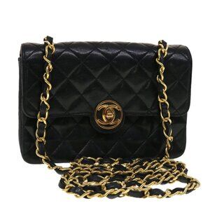 CHANEL Mini Matelasse Chain Shoulder Bag Lamb Skin Black