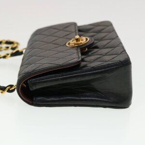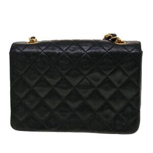 CHANEL Mini Matelasse Chain Shoulder Bag Lamb Skin Black CC Auth