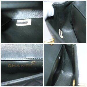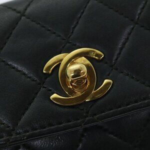 CHANEL Mini Matelasse Turn Lock Chain Bag Lamb Skin Black CC Auth 72435AV