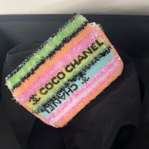 Vibrant mini bag with multicolor stripes. Features iconic CHANEL logo. Perfect for a bold statement.