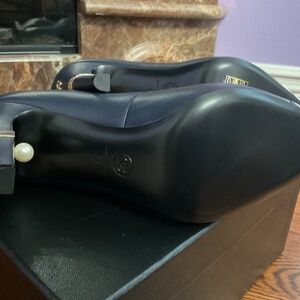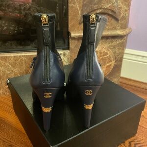 CHANEL NAVY & BLACK PEARL ACENT LAMBSKIN LEATHER HEELED ANKLE BOOTIES !!