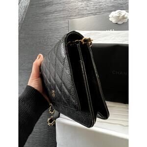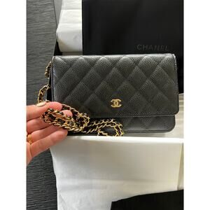 CHANEL NWT Classic Caviar Black Leather Wallet on Chain Crossbody Bag with Gold