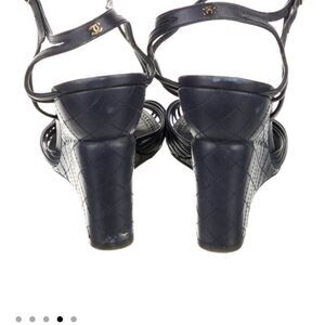 CHANEL Navy/ Black Wedge Sandals with High Heel and Strappy Design Sz 40