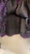 • Color and material: The wool tweed fabric is woven with purple, black, and metallic threads for a shimmer effect.