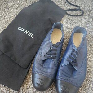 Vintage Chanel Navy flats. Women's size 5.5 wide. Super comfortable and perfect for work or every day wear.