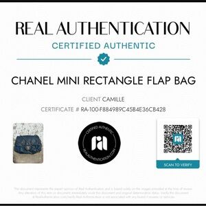 Vintage-style navy/teal quilted lambskin design. Iconic CHANEL logo clasp. Elegant chain gold-tone adjustable strap. Mini rectangle flap bag. Used, good condition, some pink lipstick stains on inner beige lining. No other significant damage.