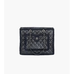 CHANEL Navy Tweed Shoulder Bag A-A34216
