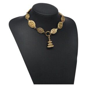 CHANEL Necklace metal Gold Tone CC Auth 131855