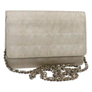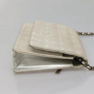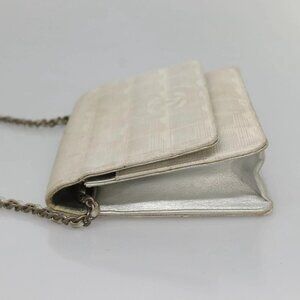 CHANEL New Travel Line Chain Wallet Nylon Silver CC
