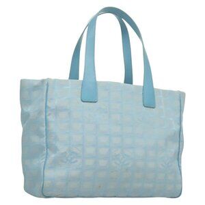 CHANEL New Travel Line Hand Bag Nylon Light Blue CC Auth mr1475