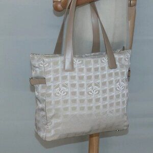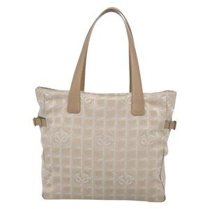 CHANEL New Travel Line Tote Bag Nylon Beige Gold CC Auth