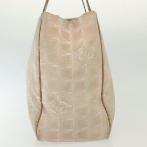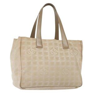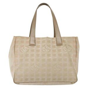 CHANEL New Travel Line Tote Bag Nylon Beige Gold CC Auth ti3356