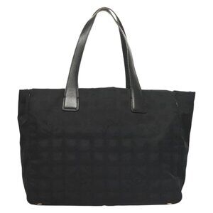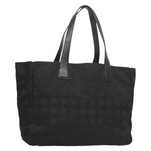 CHANEL New Travel Line Tote Bag Nylon Black gold CC Auth 131937