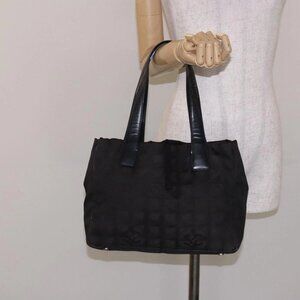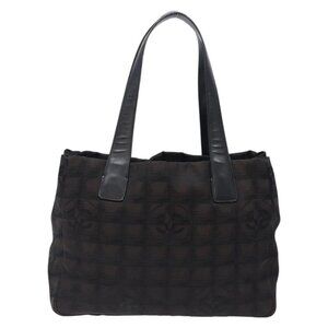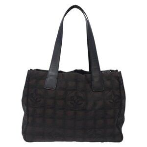CHANEL New Travel Line Tote Bag Nylon Dark Brown Black CC Auth