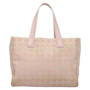 CHANEL New Travel Line Tote Bag Nylon Pink Gold CC Auth ti3318