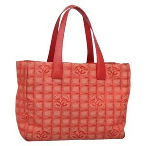 CHANEL New Travel Line Tote Bag Nylon Red CC Auth 129745