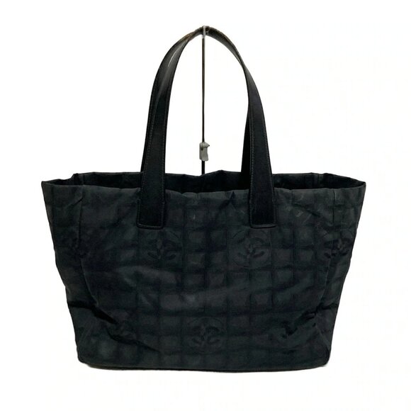 CHANEL New Travel Line Tote MM - Black Nylon Jacquard Leather Tote Bag