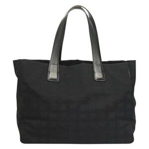 CHANEL New Travel line Tote Bag Nylon Gold Black CC Auth 132226