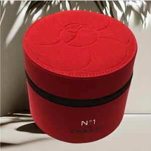 CHANEL No 1 BEAUTY VANITY CASE ROUND MAKEUP BAG RED VELVET