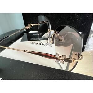 CHANEL Oversized Square Gold Frameless Gradient Gray Lens Sunglasses (CHXX050)