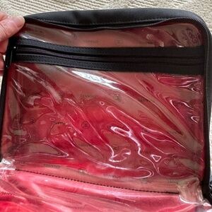CHANEL PARFUMS AUTHENTIC BLACK ZIPPERED COSMETICS POUCH WITH RED LOGO LINING